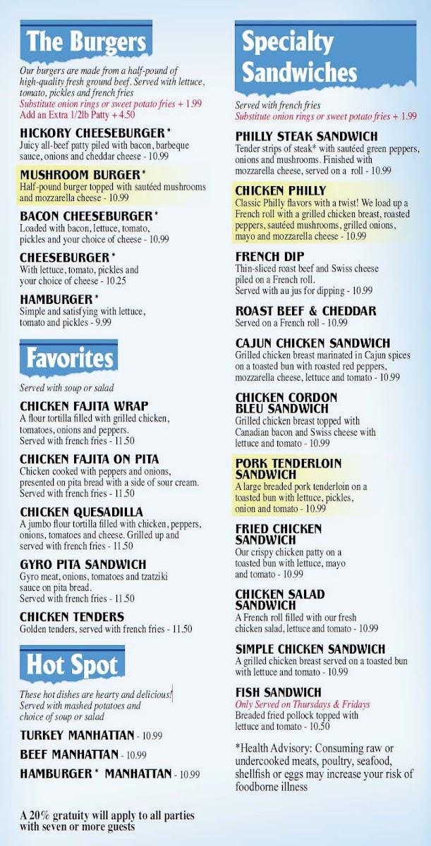 An Indiana tradition! Our large breaded pork tenderloin plated with potato, vegetable and a dinner roll