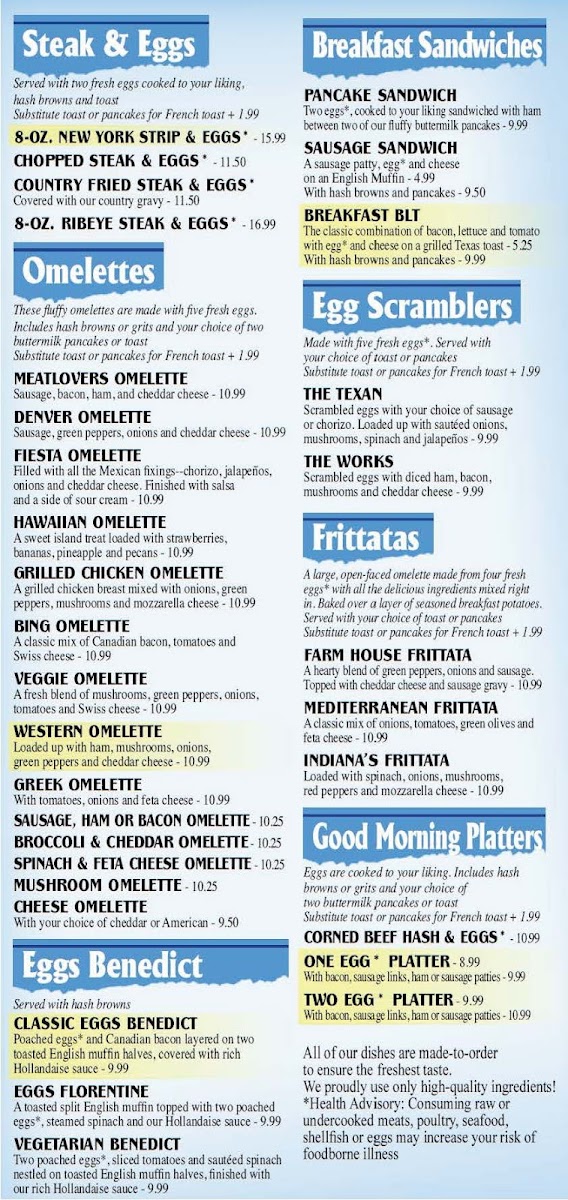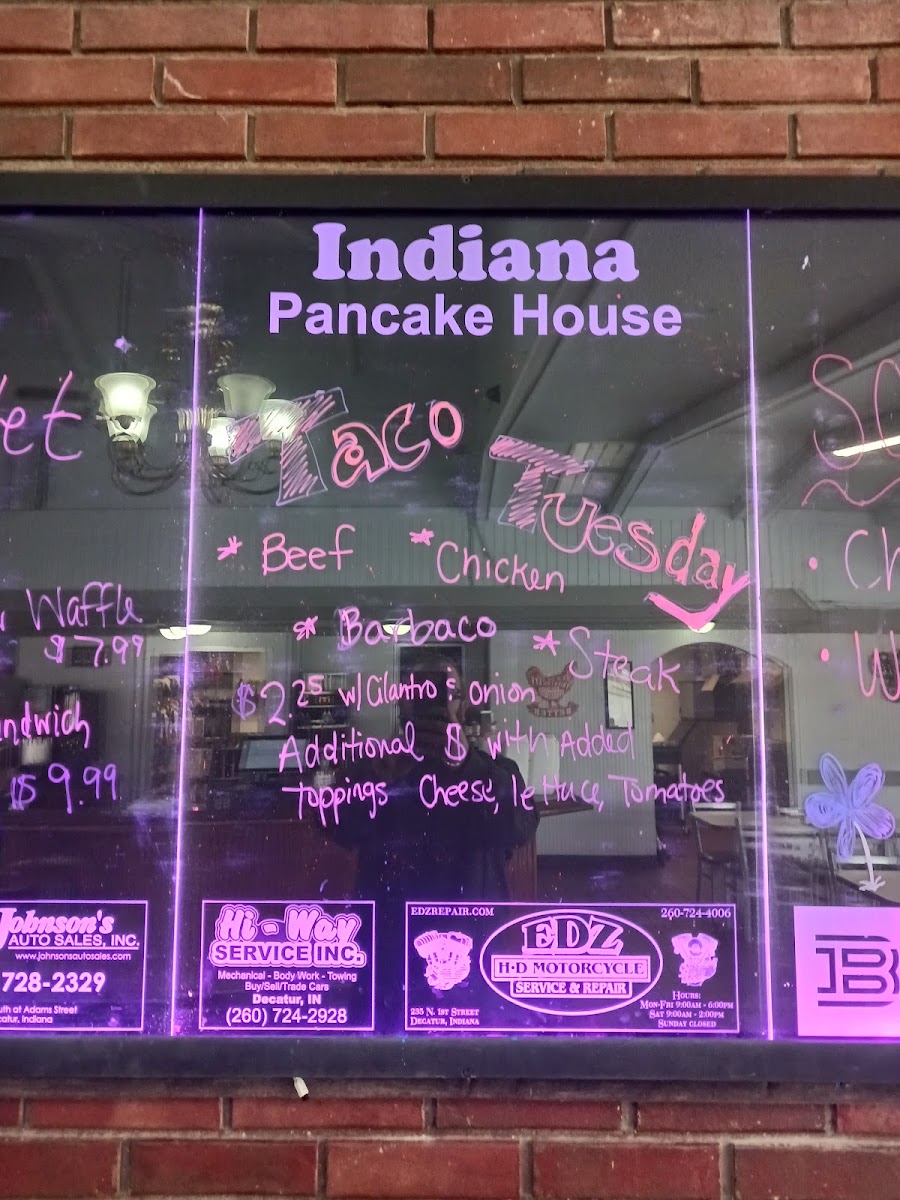 If you're in the mood for a hearty, homestyle breakfast, look no further than the Indiana Pancake House Menu. Located at 1241 N 13th St in Decatur, IN, this cozy spot is a favorite for locals and visitors alike. The menu features an impressive selection of mouth-watering pancakes, from classic buttermilk stacks to more adventurous options topped with fruit, syrup, or whipped cream. Whether you're craving something savory like a classic omelet or a comforting plate of biscuits and gravy, there's something here for everyone. Don’t miss the delicious waffles and freshly brewed coffee, perfect for starting your day right. With friendly service and a laid-back atmosphere, every visit feels like a treat. Whether you’re dining in or grabbing something to go, you can’t go wrong at Indiana Pancake House.